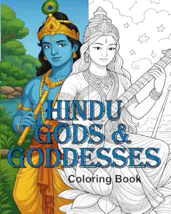 From the mighty Shiva meditating in the Himalayas to the graceful Lakshmi showering blessings, each page invites you to explore the richness of Hindu mythology through detailed, hand-drawn illustrations. Meet beloved deities like Vishnu, Durga, Ganesha, Krishna, Saraswati, and many more, each accompanied by sacred symbols, animals, and temples that reflect their divine powers and roles.