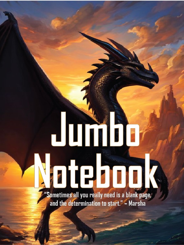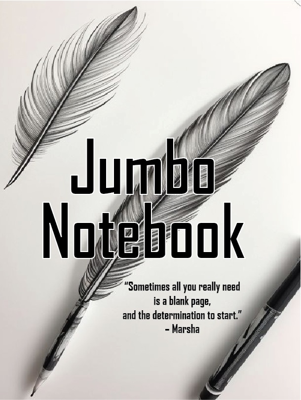 The Jumbo Notebook (Letter size -500 pages) is created for those writing full manuscripts, creating journal books, those whose work need continuity. This giant is for the creative who needs pages like they need air.