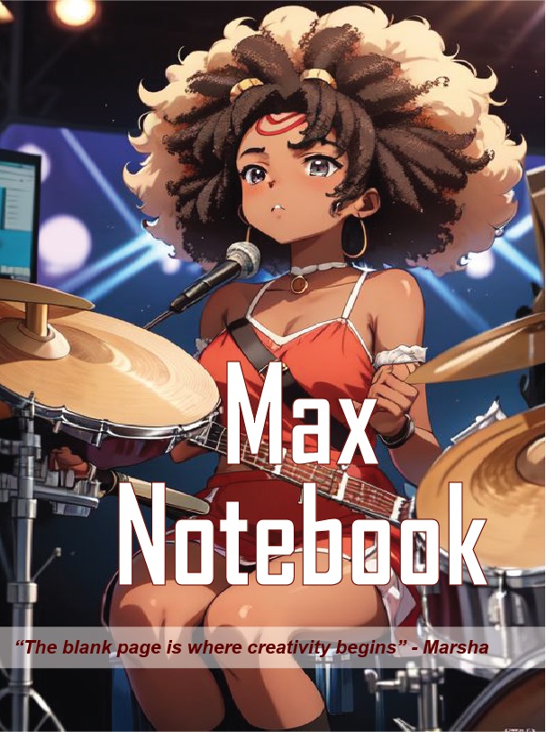 The Max Notebook (Letter size -284 pages) is created for writers, musicians and teachers. For the creative who needs more pages to work with because note-booking is part of the profession.